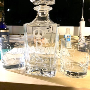 This is a perfect-size whiskey decanter engraved with the PBS letters on the front. Perfect for an at-home bar, decanters are believed to elevate the smell and taste of some whiskeys: store bourbon, scotch, and other spirits in them.